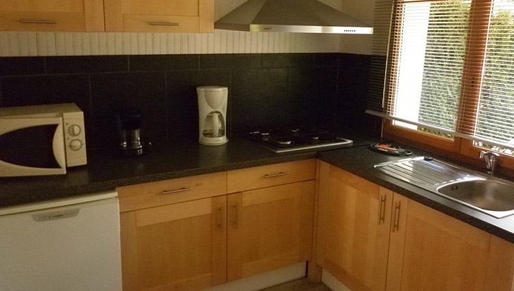 Cottage for 4/6 people ( 48 m² ), equipped with a bedroom with a 140cm bed and a sleeping area with 2 single beds, living room with sofa bed, bathroom, WC, kitchen equipped with a mini oven and outside a private garden with garden furniture.